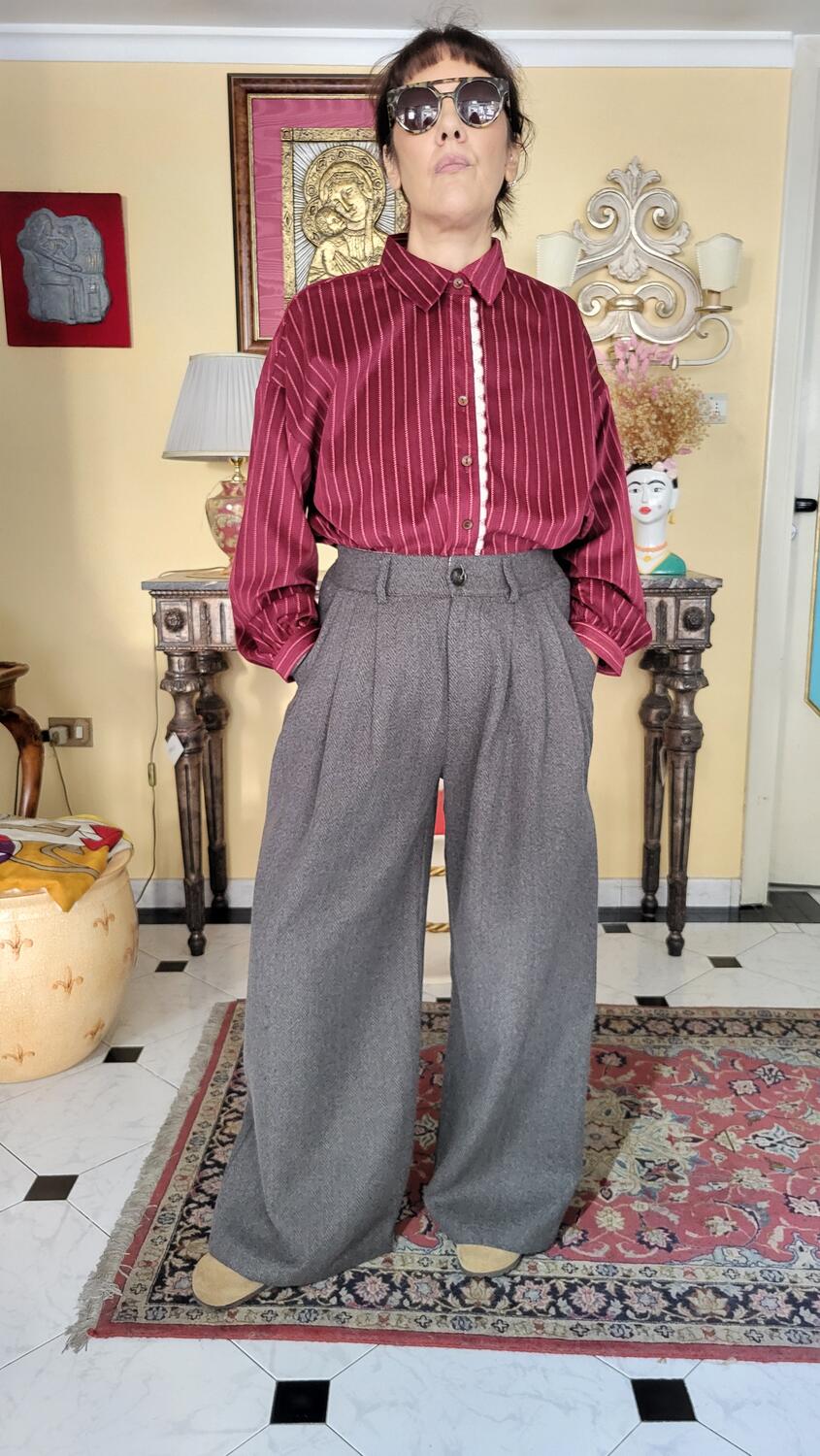 Camicia linea classica, modello in velluto a righe, in dettaglio merletto, colore bordeaux