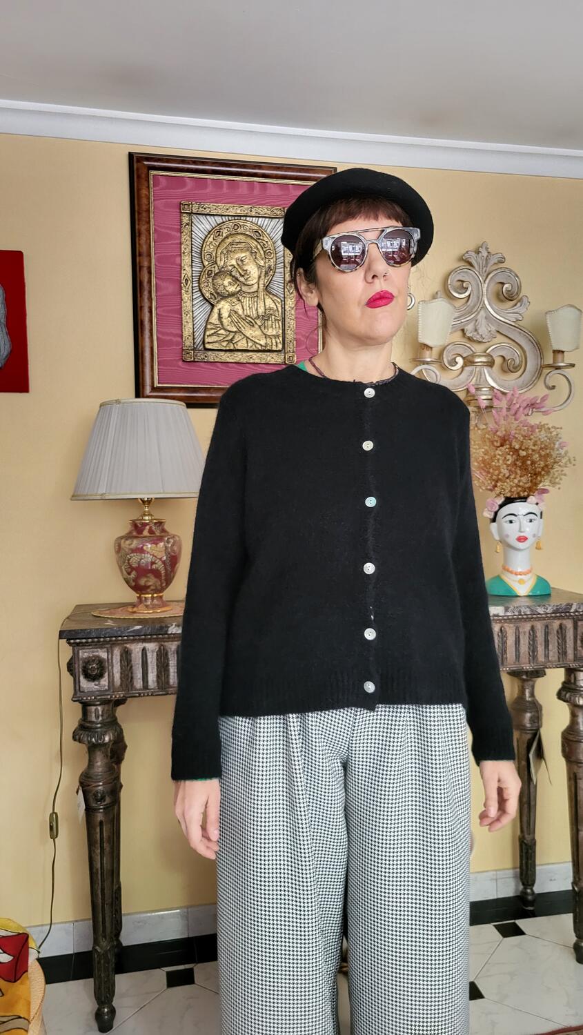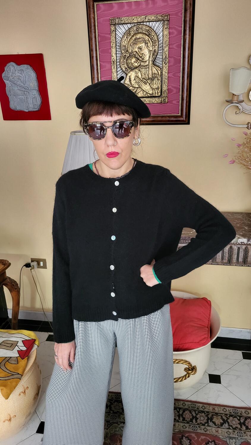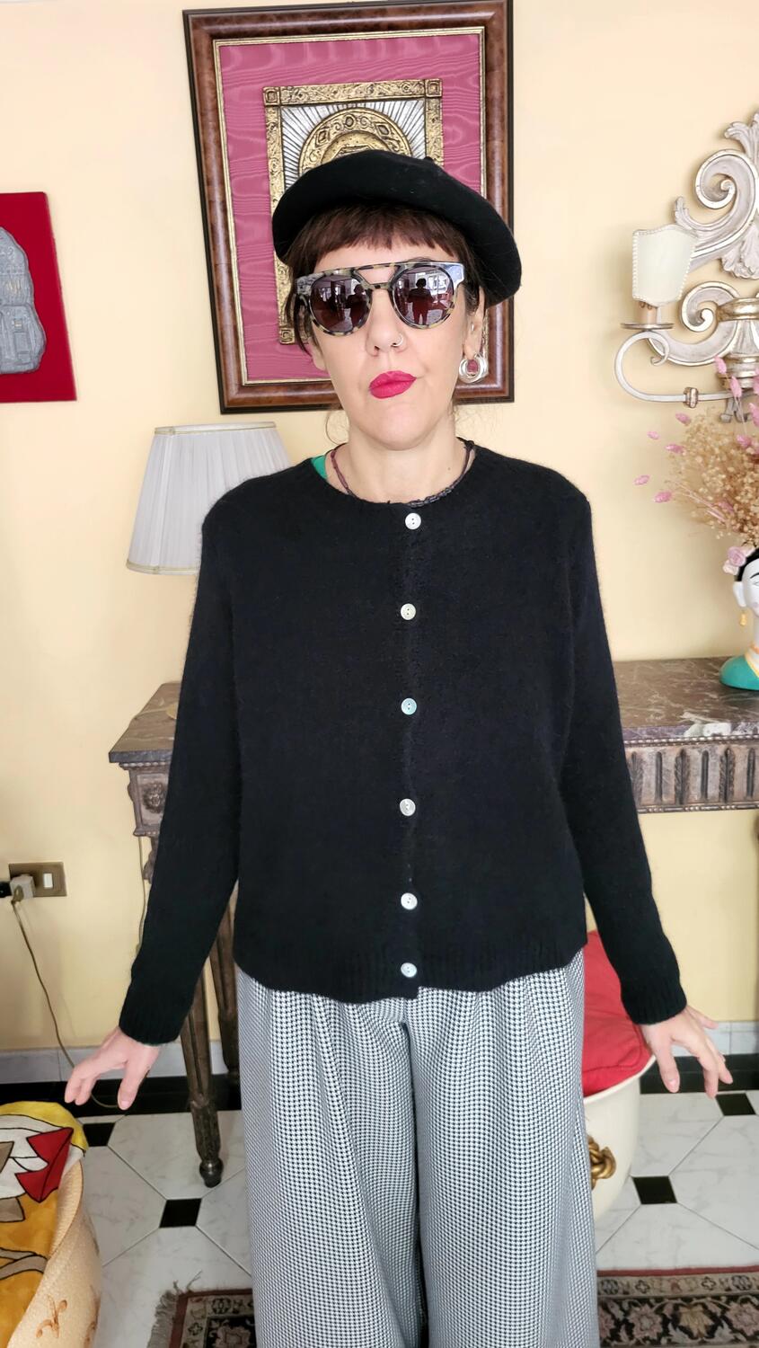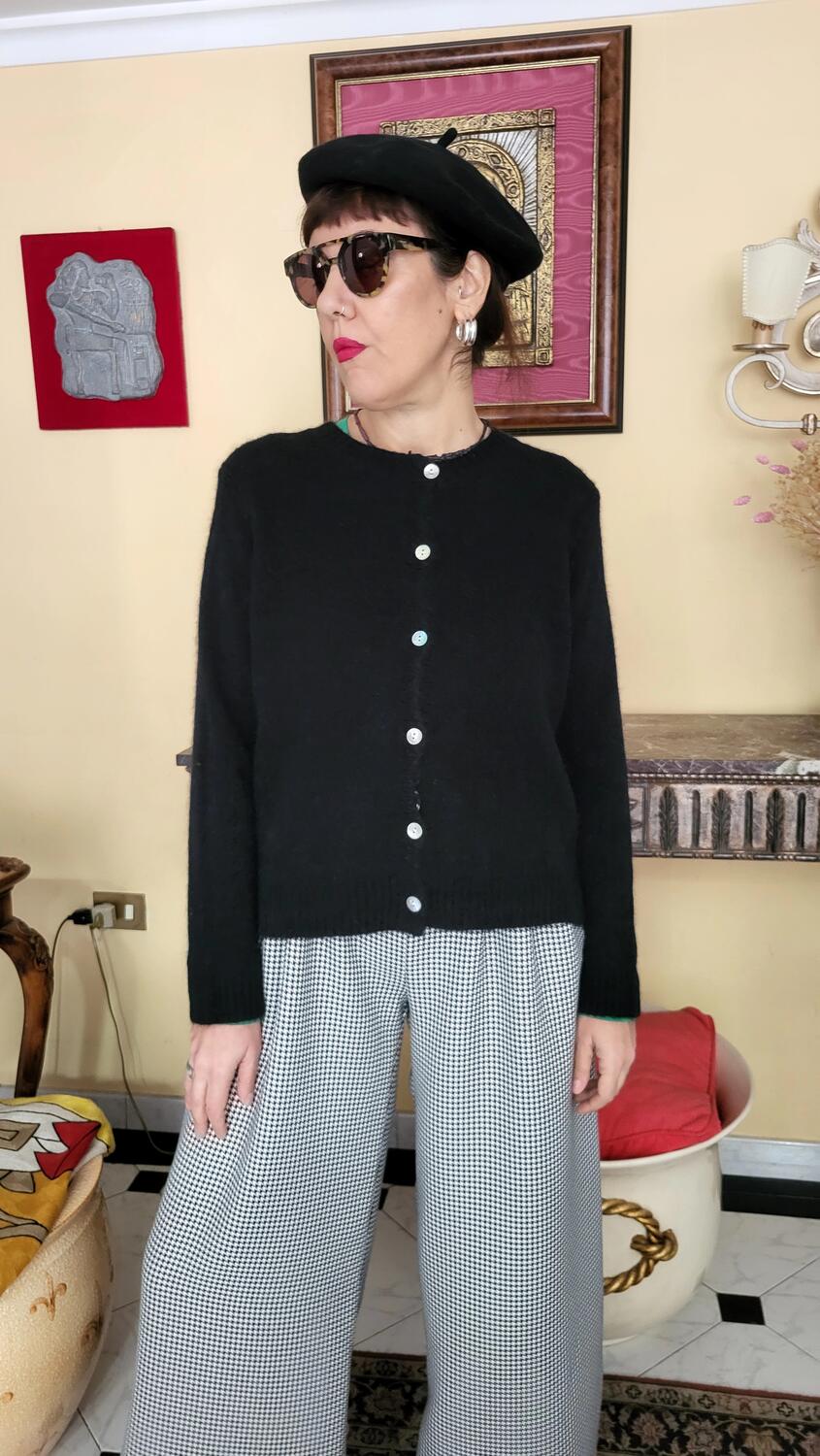 Golfino linea in baby alpaca, modello classico, in dettaglio bottoni madreperla, colore nero