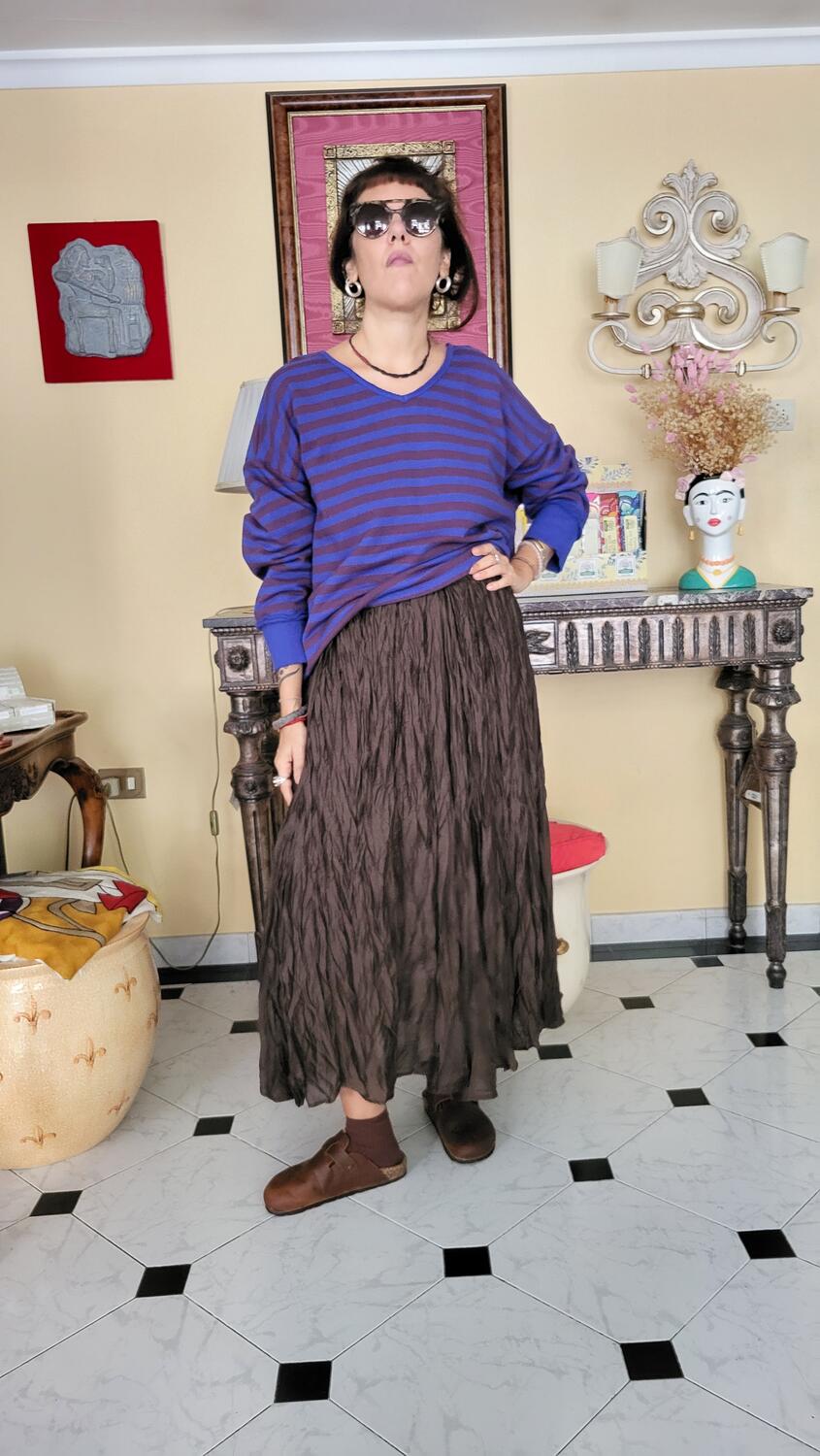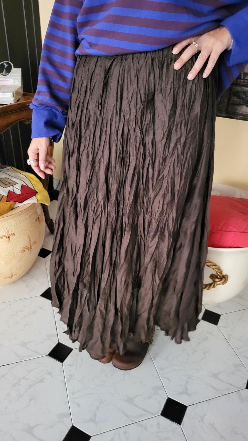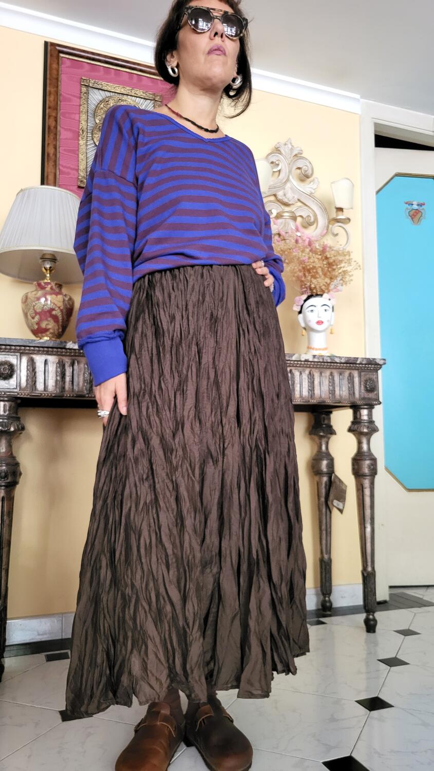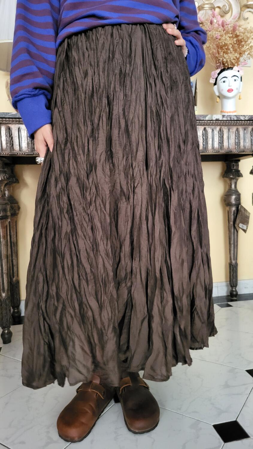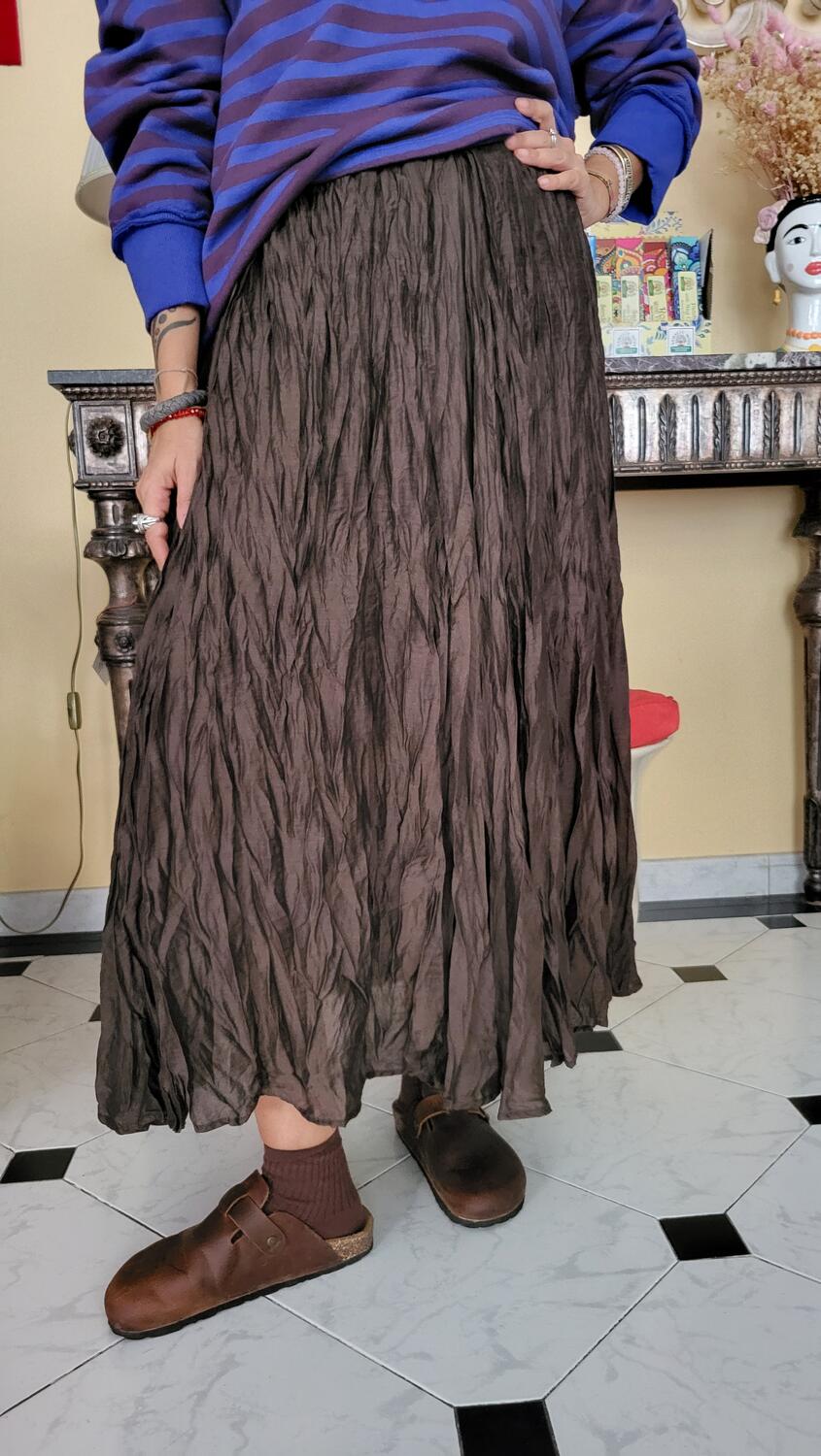 Gonna linea midi, modello elastico in vita, bellissimo effetto stropicciato, colore cacao