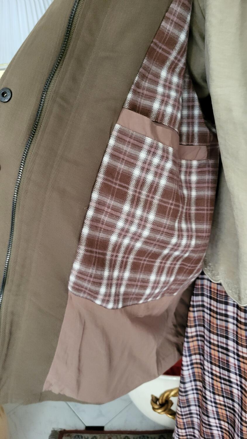 Giacca stile parka, modello classico con bottoni e cerniera, fodera scozzese, colore verde militare