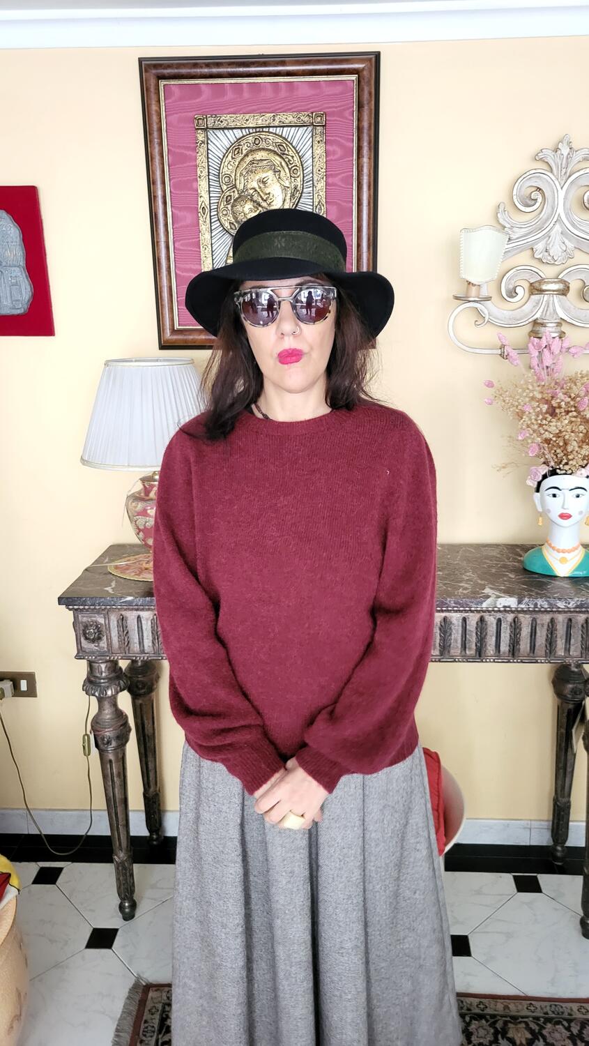 Pullover collezione maglieria in baby alpaca, modello classico, colore bordeaux