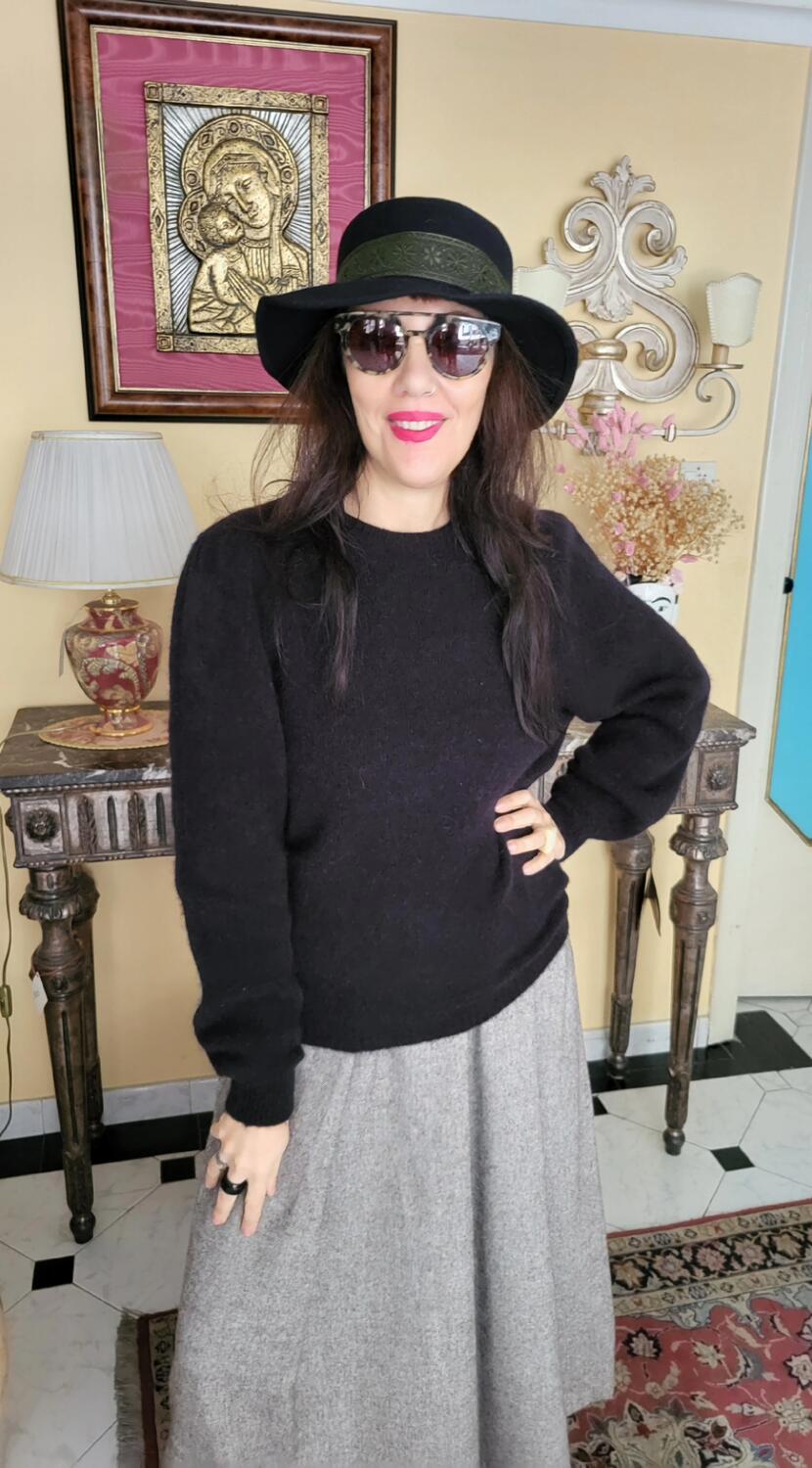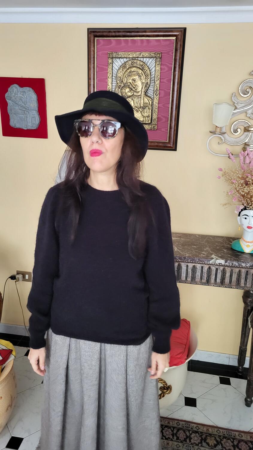 Pullover collezione maglieria in baby alpaca, modello classico, colore nero