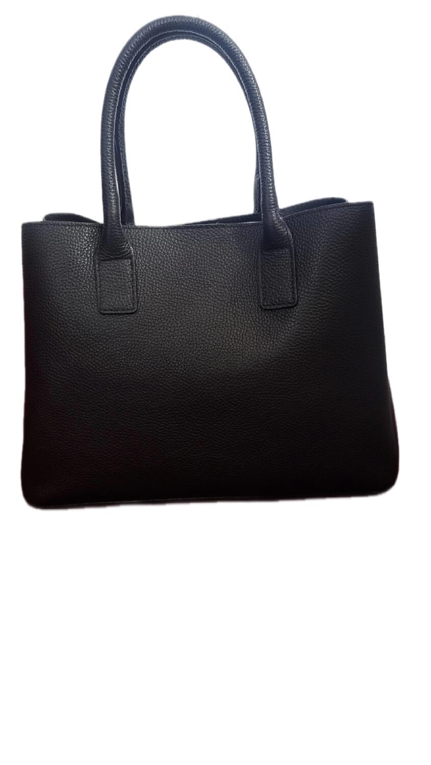 Borsa linea in pelle, modello medio a tre scomparti, manici e tracolla regolabile