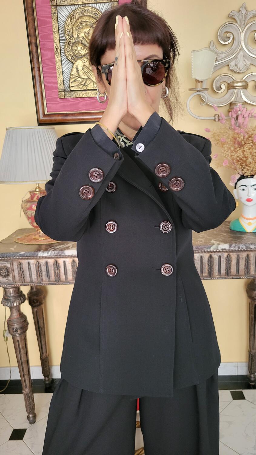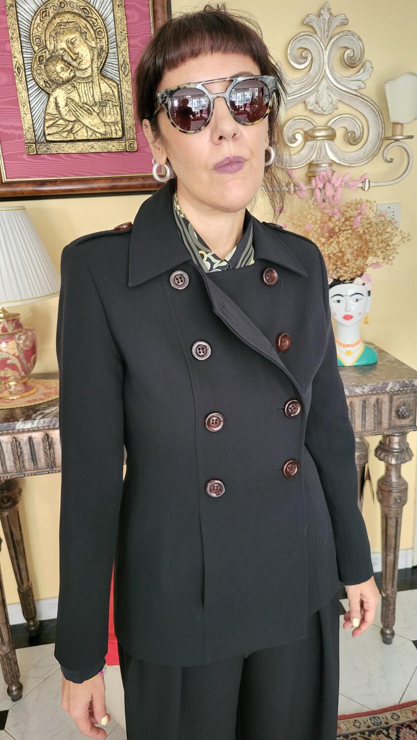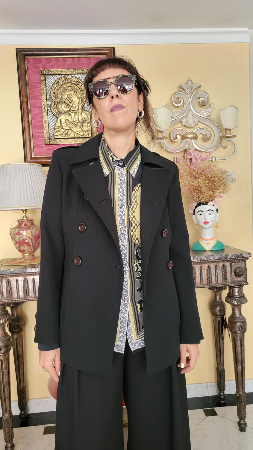 Caban collezione francese, taglio classico, maxi bottoni tondi bellissimo colore a caffè a contrasto, colore nero. Il capo è un fondo di magazzino nuovo mai indossato.
