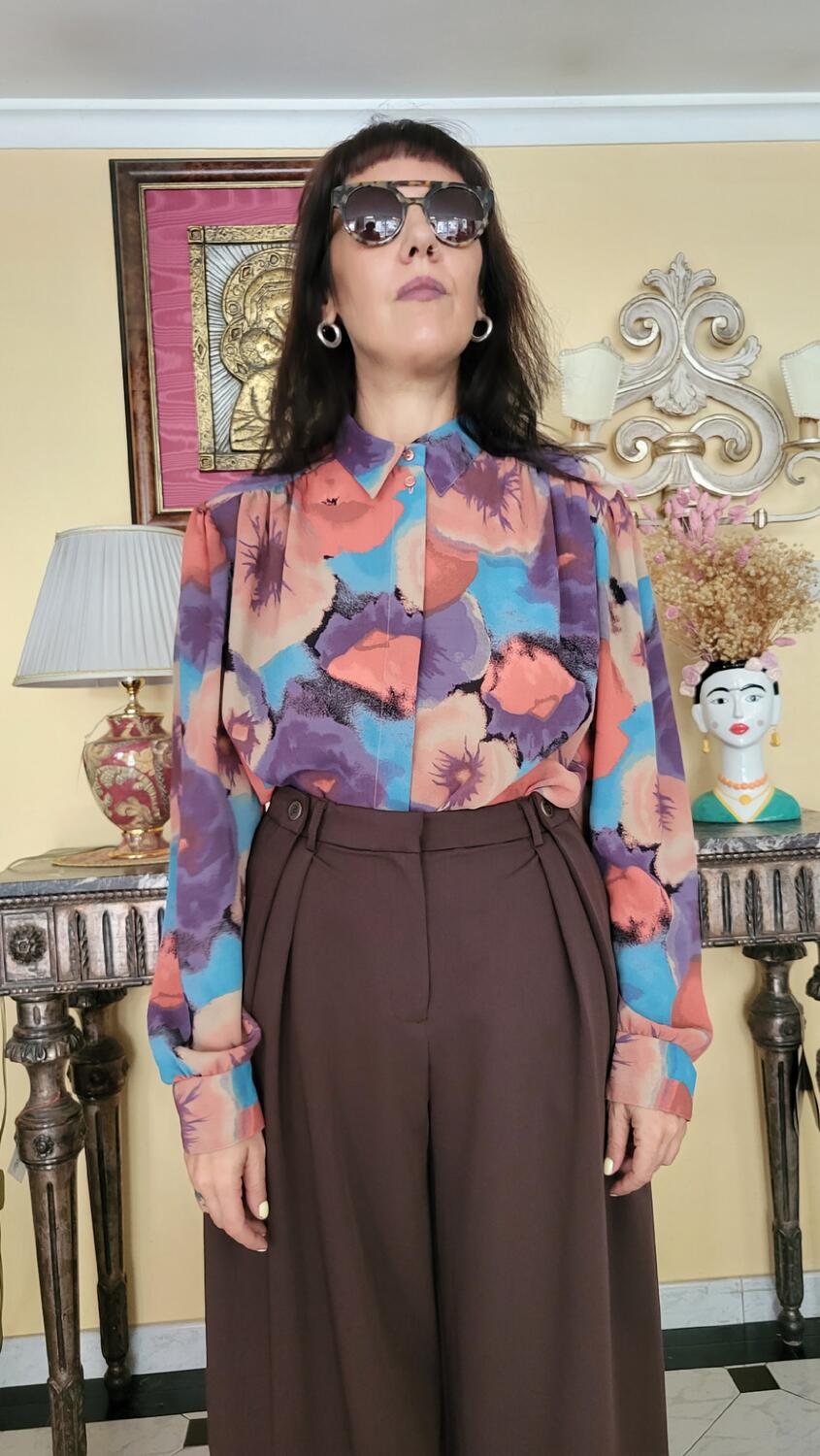 Camicia linea classica, modello anni novanta, bellissimo effetto della stampa miscelata sulle tonalità pastello.
