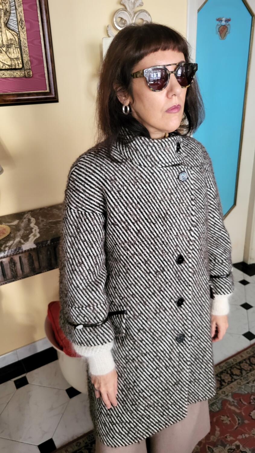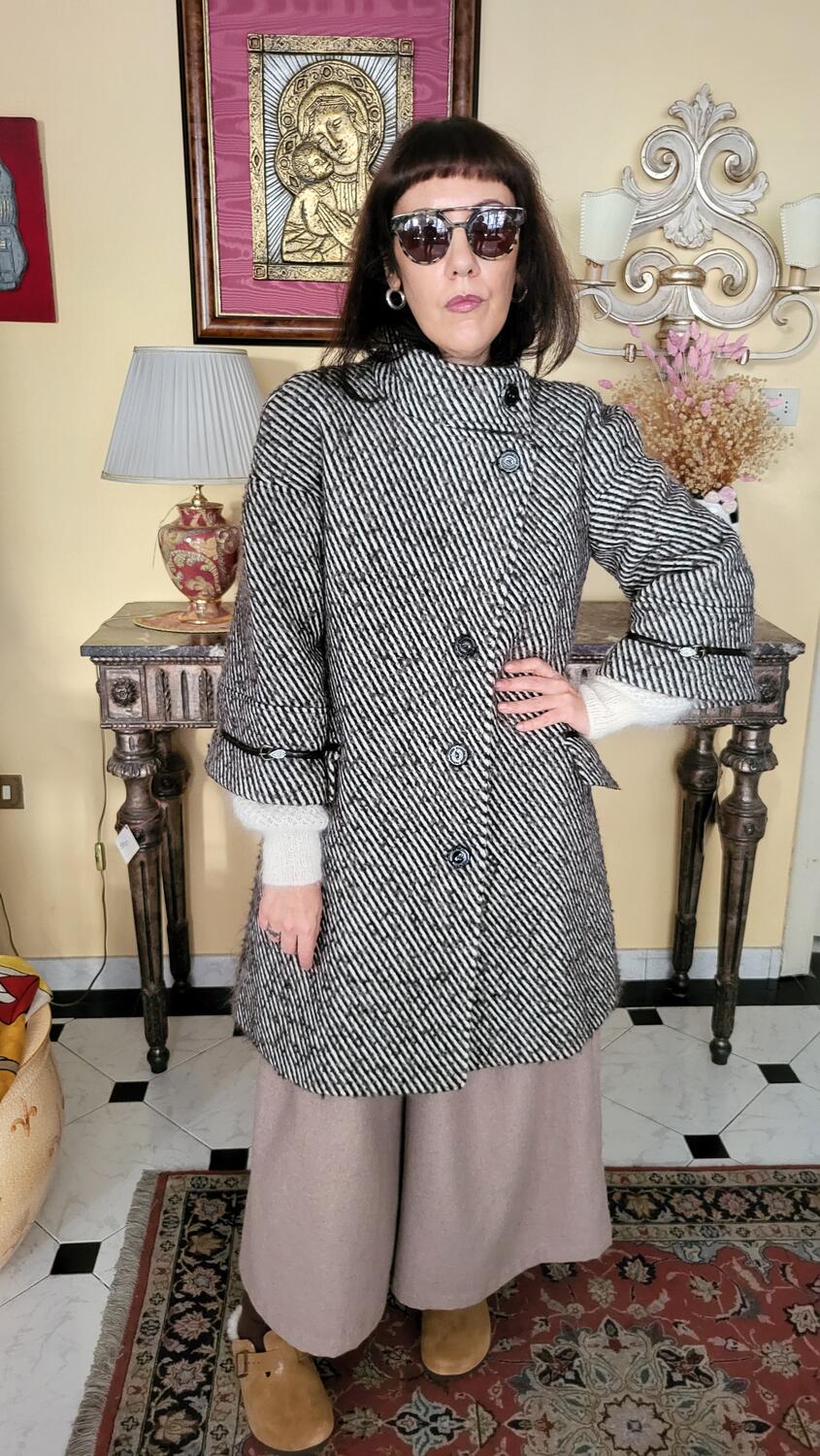 Vestibilità: Tg indicata 44; si consiglia dalla tg 40 alla tg 44 (In foto lo indossa una tg 42 alta 1,70) Lunghezza totale capospalla 88 cm.