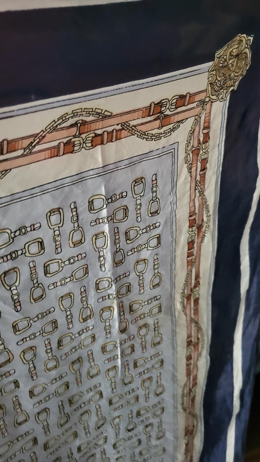 Foulard linea in pura seta, modello medio grande classico, stampa grafica, lo stile ricorda Gucci, colore polvere e blu
