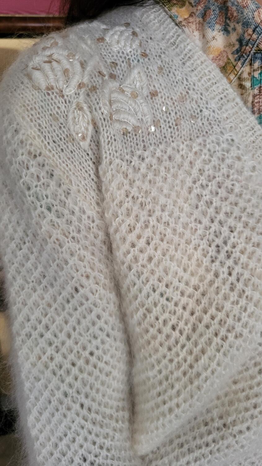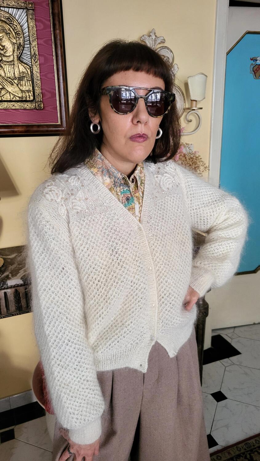 Composizione: Lavorato a mano; dal pregio della lana molto soffice si suppone mohair o angora