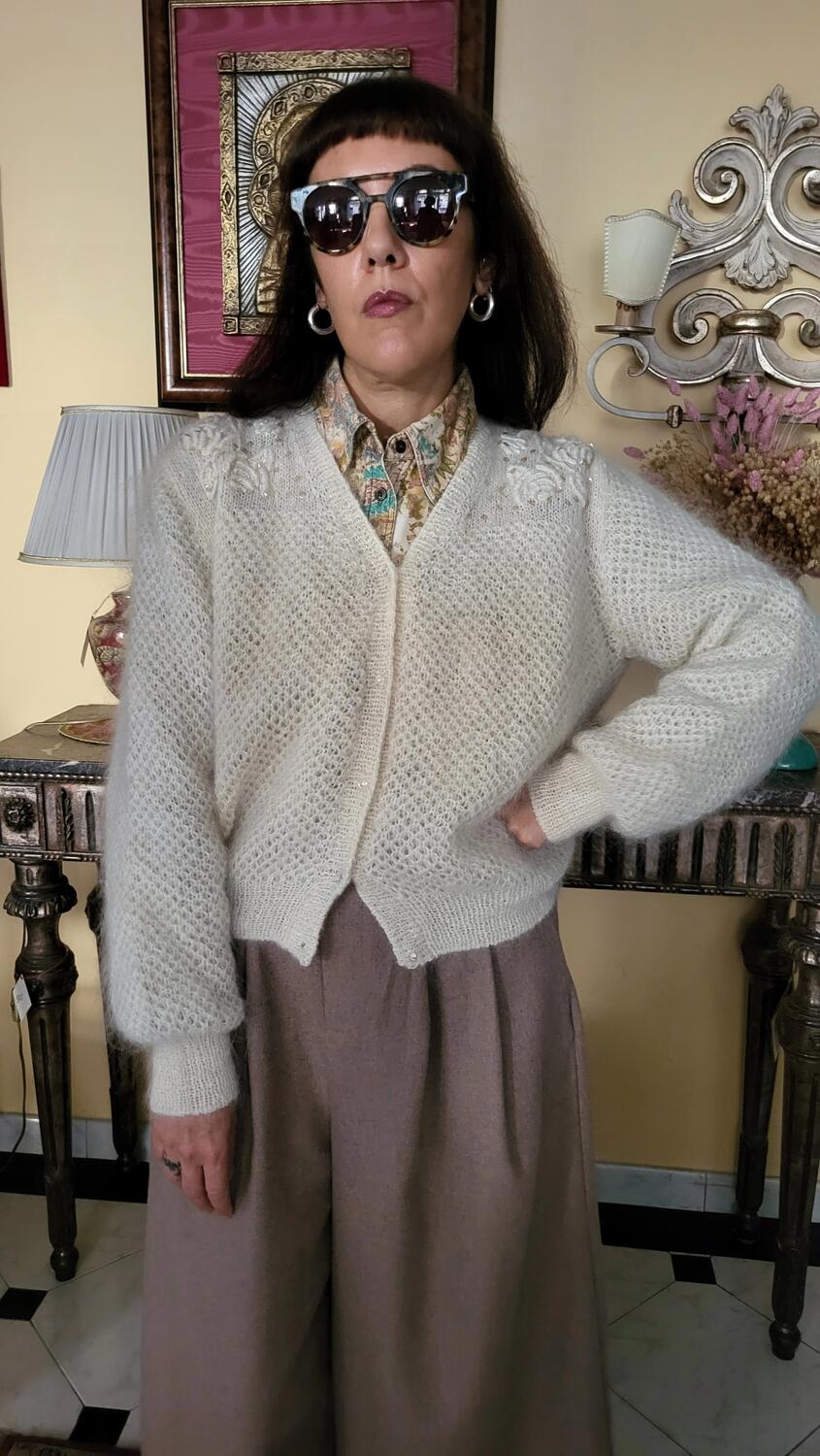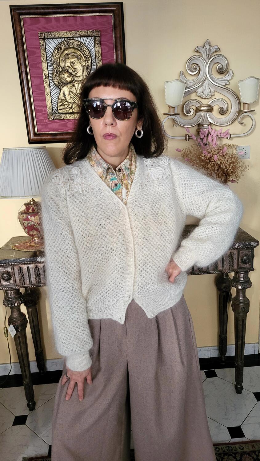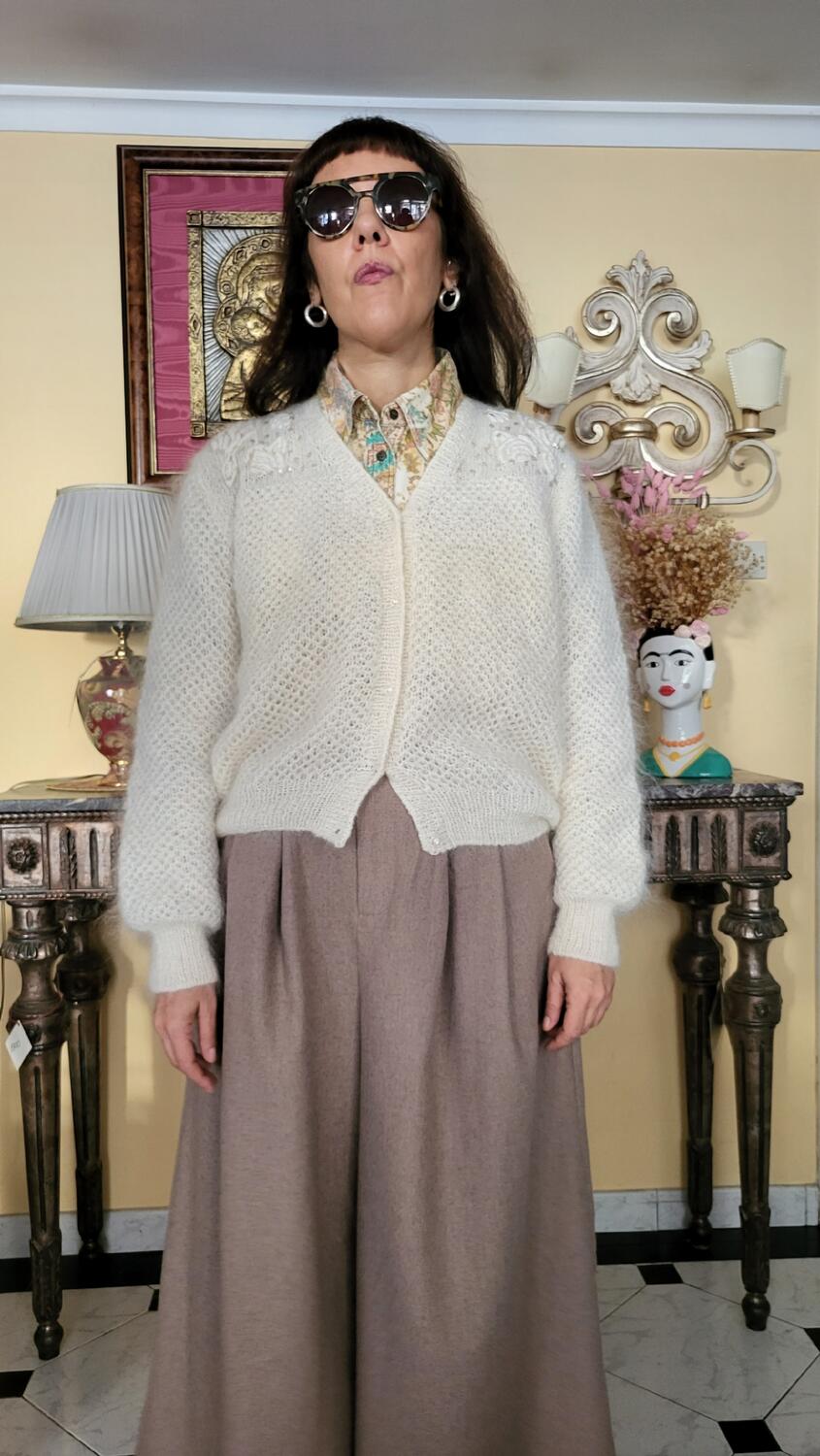 Golfino in pura lana, modello lavorato a mano, colore bianco